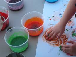 واتركي فرصه لطفلك يلعب ويلهو ويشعر بالملمس الرطب للون ودمج الالوان وتغيرها مع بعض