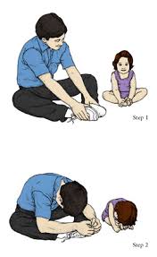 يوضع بسط للطفل ملون ان يمشي وهو داخل الدائرة ويضع فقط قدم داخل كل دائرة هنا سن صغير ويطلب المشي اثناء الموسيقي يستمعها ويتوقف عند الانتهاء